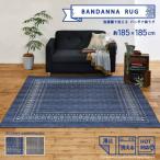 洗濯機で洗えるバンダナ柄シェニールラグ 約185×185cm (約2畳)正方形 ヴィンテージなクロスバンダナ風ラグ 滑り止め付き