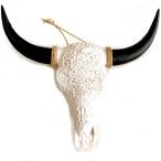 ネイティブアメリカン カウスカル オブジェ(白×フラワー柄) 牛 骸骨 スカル 置物 壁掛け(バリ島直輸入)
