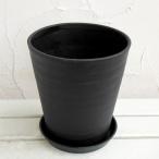セラアート長鉢8号(黒)M 鉢と受け皿のセット