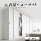 クローゼット 大容量収納棚 幅150cm 引き戸 おしゃれ ワードローブ ホワイト 白
