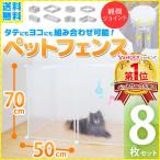 ペットフェンス ドア付き 透明 8枚 ペットサークル 犬用 70cm×50cm ペットゲート 犬 猫 室内 階段 ペット用品 置くだけ 屋外 柵 ケージ