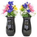 仏花 造花 紫の桔梗と菊の小花束一対 (花器付きセット小) 仏壇用 小さめ シルクフラワー お彼岸 お盆 お仏壇 仏花 btb