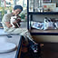 before→after いわゆる靴箱を撤去し、壁紙の上から横着にグレーに塗り、リビングボードをセットして、上にショップ風ラックを自作。