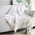 マルチカバー ナチュラル 菱形デザイン 北欧風 フリンジ付き (アイボリー)