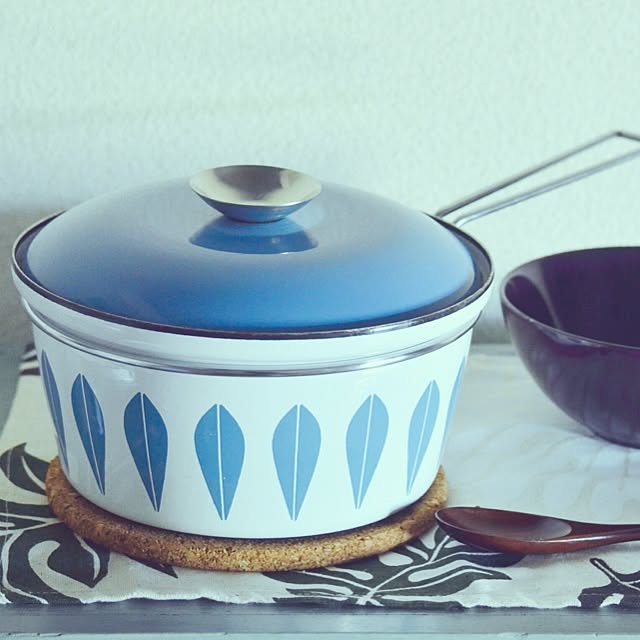 Comptoir de Familleのコーナーを別のところに移動して、この場所の下段(カーテンに隠れたところ)に炊飯器やIH卓上コンロを置き、良く使うBREAD缶と、冬に重宝するキャサリン・ホルムの大鍋(おでんやポトフ、シチュー用)を手の届くところに置きました。