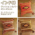 クッションカバー キリム 45×45 綿 混 おしゃれ 洗える 手織り インド ファスナー開閉
