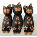 猫 雑貨 置物 木彫り お座り猫トリオ(黒)バリ猫 置物 三個セット 猫グッズ ギフト アジア雑貨