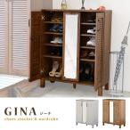 下駄箱 シューズボックス アンティーク 鏡付 ロータイプ 玄関収納 おしゃれ