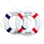 壁掛け 浮き輪 マリン系 地中海 西海岸 ハワイ 風 インテリア オブジェ 雑貨 赤青 2色セット 選べる( 白,  35cm)