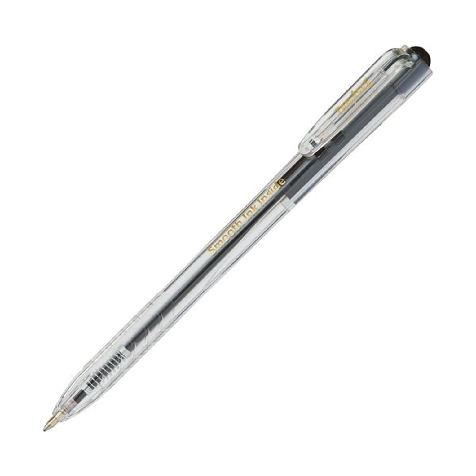 (まとめ)TANOSEE ノック式なめらかインク油性ボールペン 0.7mm 黒(軸色:クリア)1パック(10本)【×20セット】