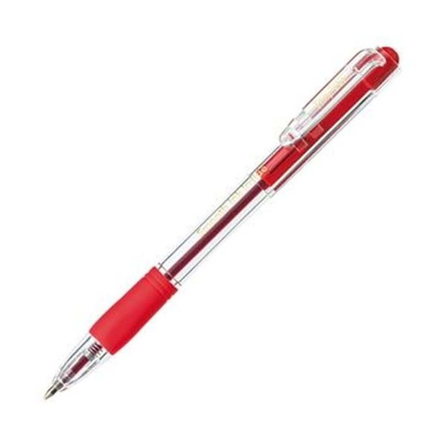 (まとめ)TANOSEE ノック式なめらかインク油性ボールペン グリップ付 0.7mm 赤(軸色:クリア)1パック(10本)【×20セット】