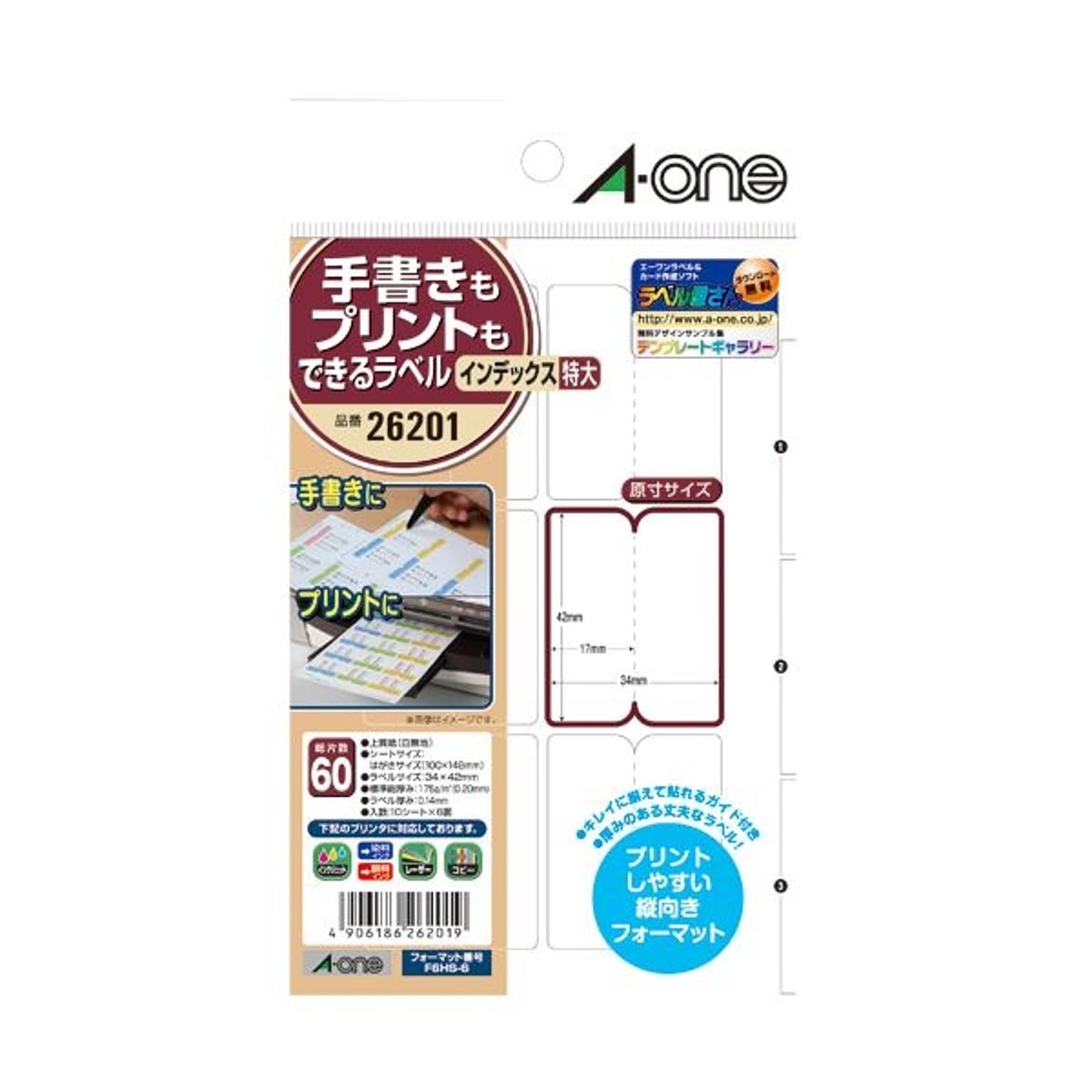 (まとめ) エーワン 手書きもプリントもできるラベルはがきサイズ インデックス 特大 26201 1パック(60面:6面×10シート) 【×50セット】