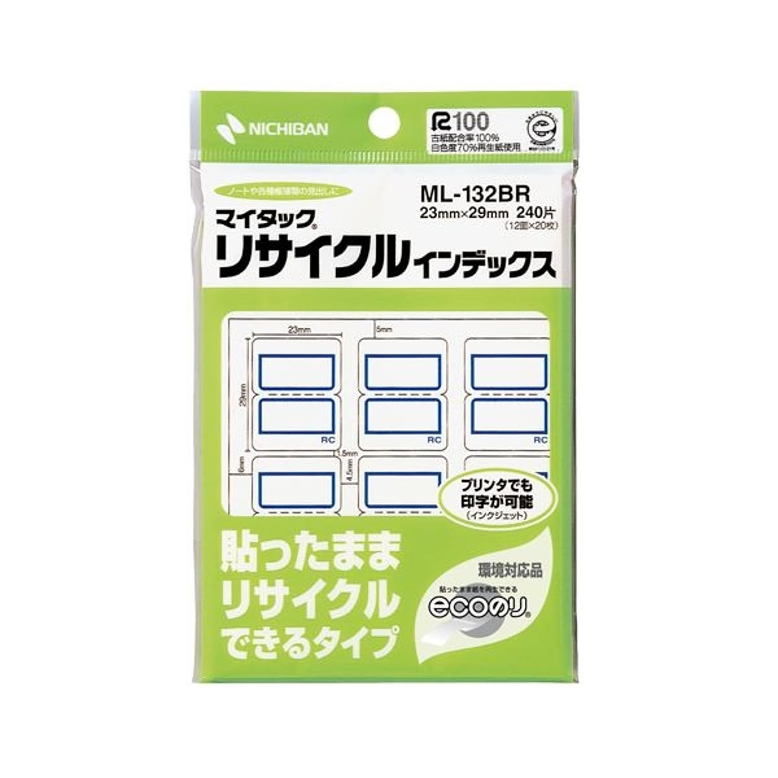 (まとめ) ニチバン マイタックリサイクルインデックス 中 23×29mm 青枠 ML-132BR 1パック(240片:12片×20シート) 【×50セット】
