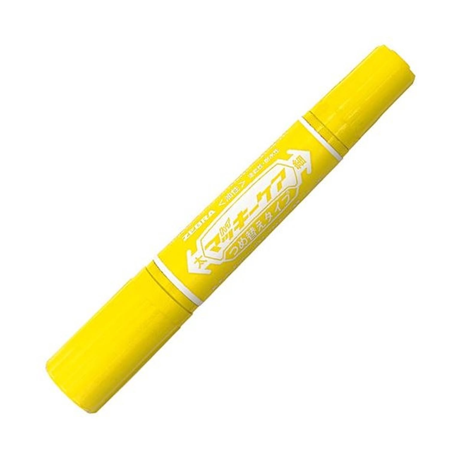 (まとめ) ゼブラ 油性マーカー ハイマッキーケア つめ替えタイプ 太字+細字 黄 YYT5-Y 1本 【×100セット】