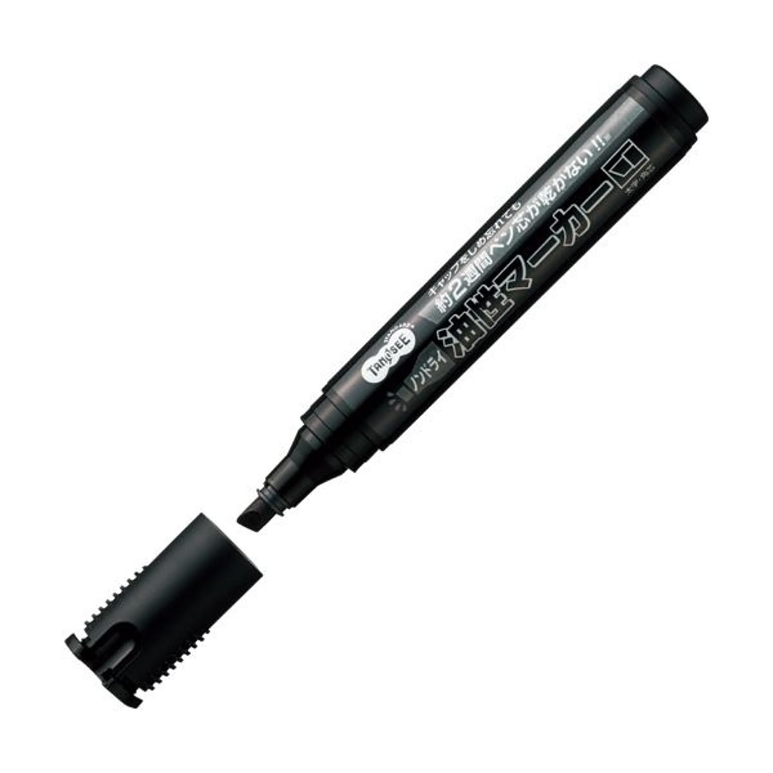 (まとめ) TANOSEE ノンドライ油性マーカー太字・角芯 黒 1本 【×100セット】