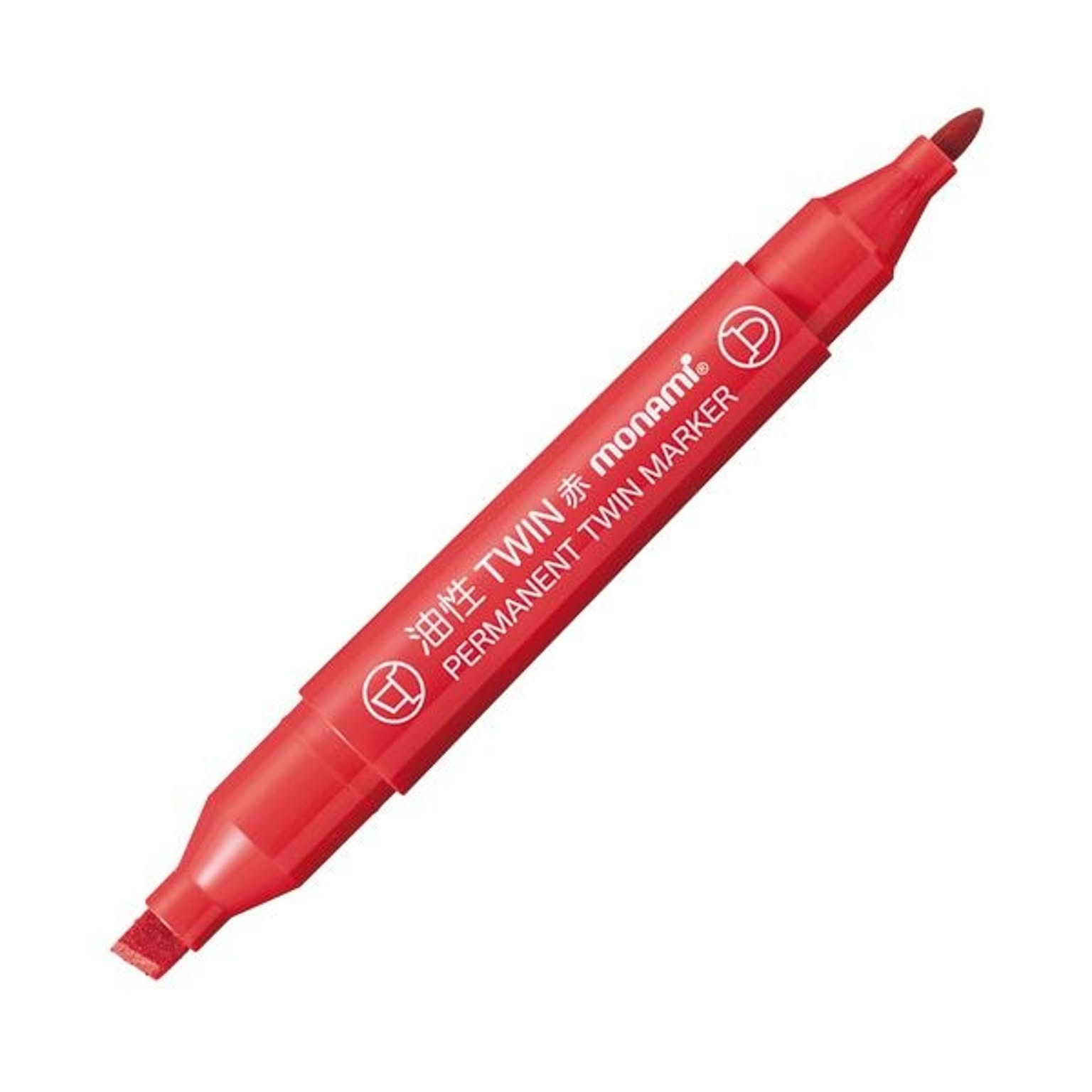(まとめ) モナミ 油性ツインマーカー 太字+細字赤 18435 1本 【×100セット】