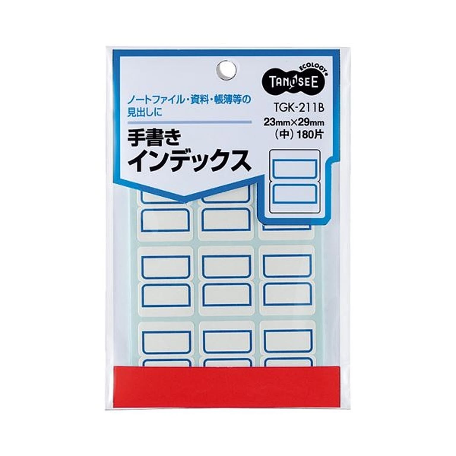 (まとめ) TANOSEE 手書きインデックス 中 23×29mm 青枠 1パック(180片:12片×15シート) 【×100セット】