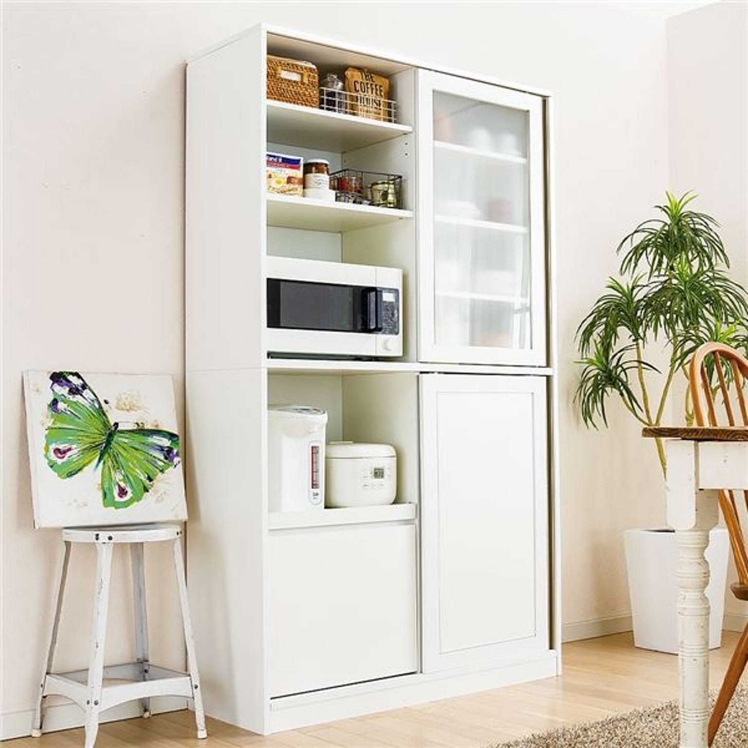 スタイリッシュ 食器棚/キッチン収納 【ホワイト】 約幅105cm 大容量 家電収納庫 スライド式テーブル付き 組立品 〔台所〕