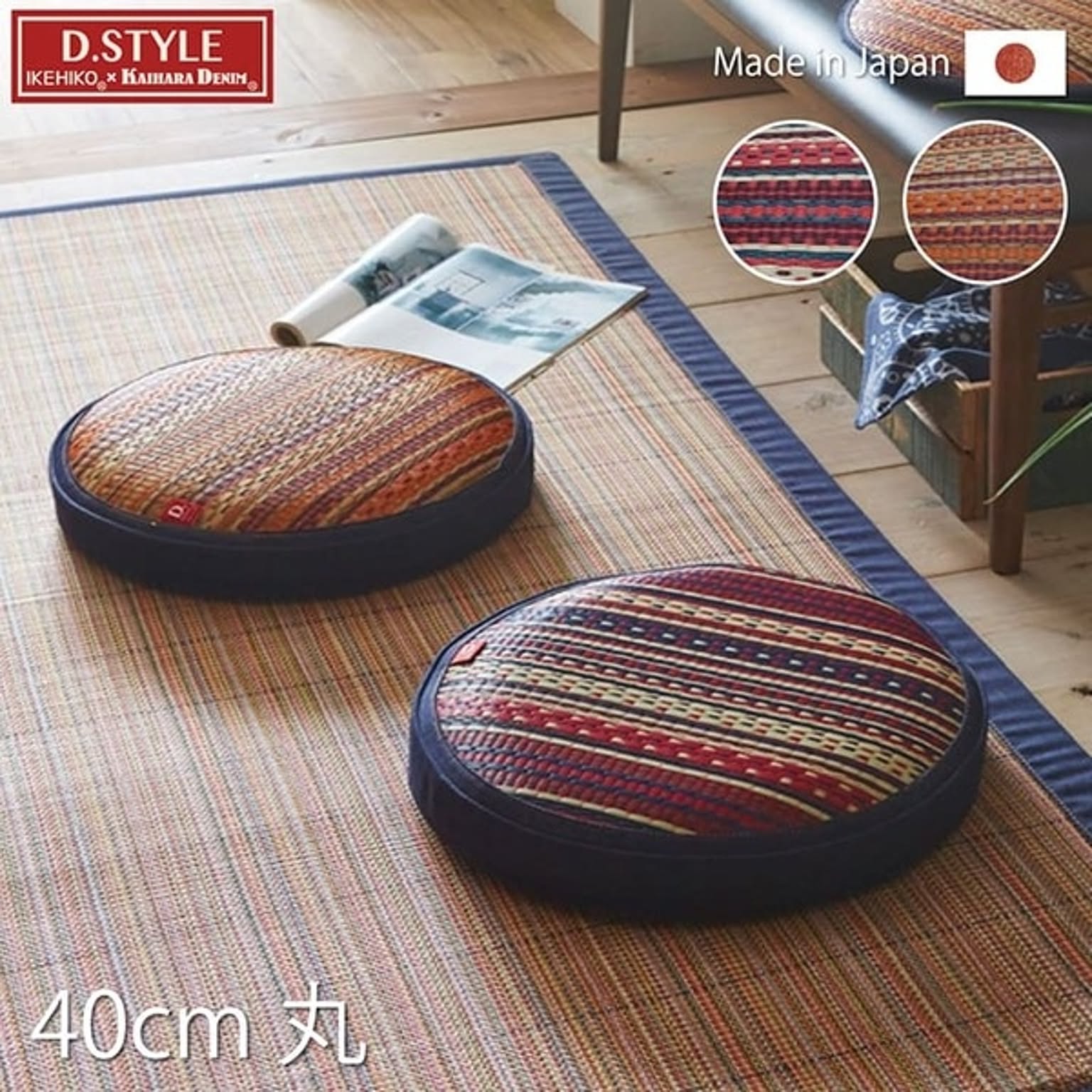 い草 クッション レッド 円形 約40cm×8cm 軽量 抗菌防臭 調湿 吸湿 消臭 国産 デニム 胡坐スツール リビング【代引不可】