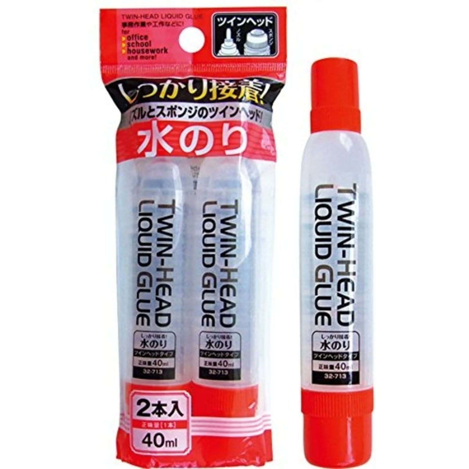 しっかり接着!ツインヘッド水のり40ml 2本入 32-713 【12個セット】