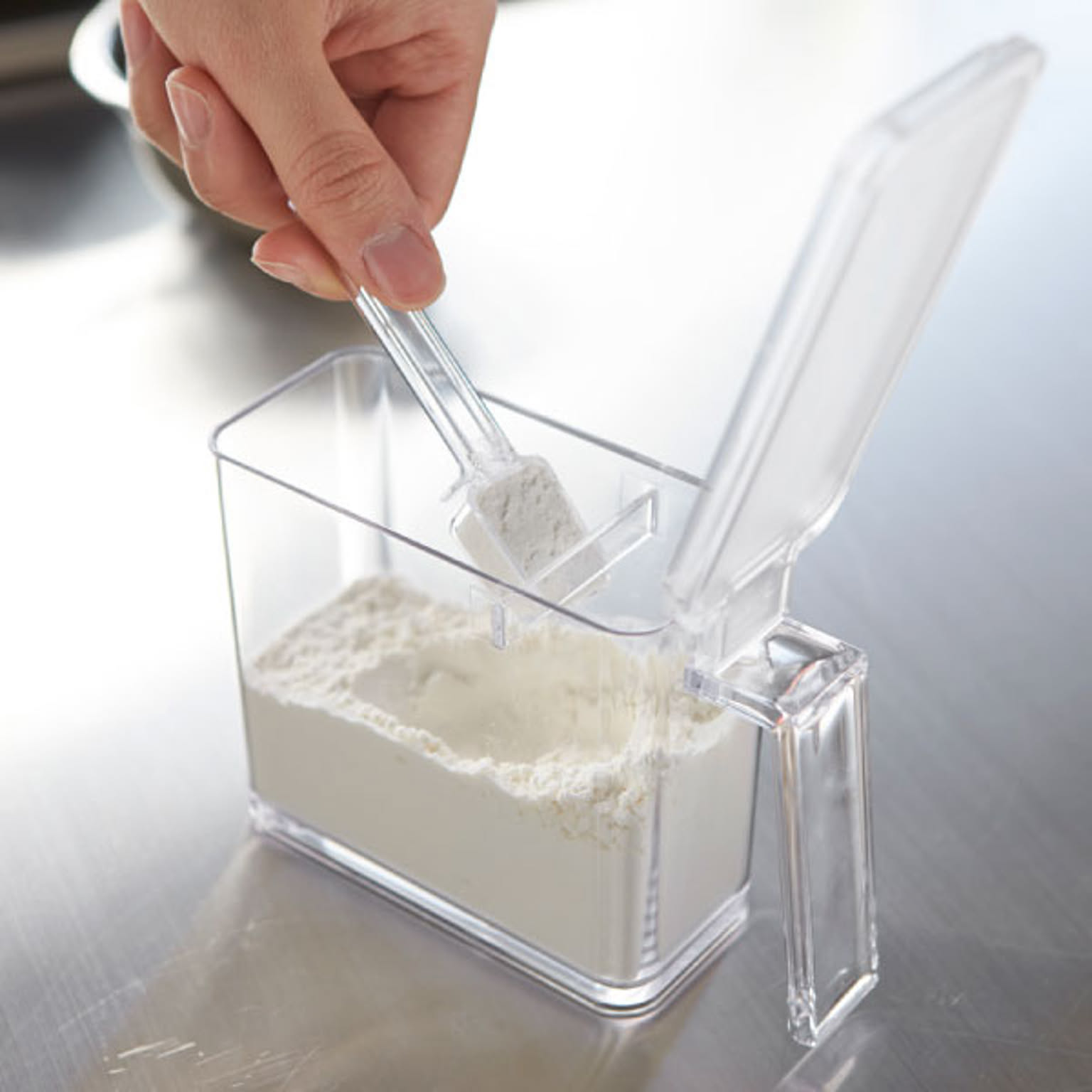 小さじ1杯分の計量スプーンと、すり切り用の板が付いているため、その場でさっと計量できて、調理の手を止めることなく使えて、とても便利です。