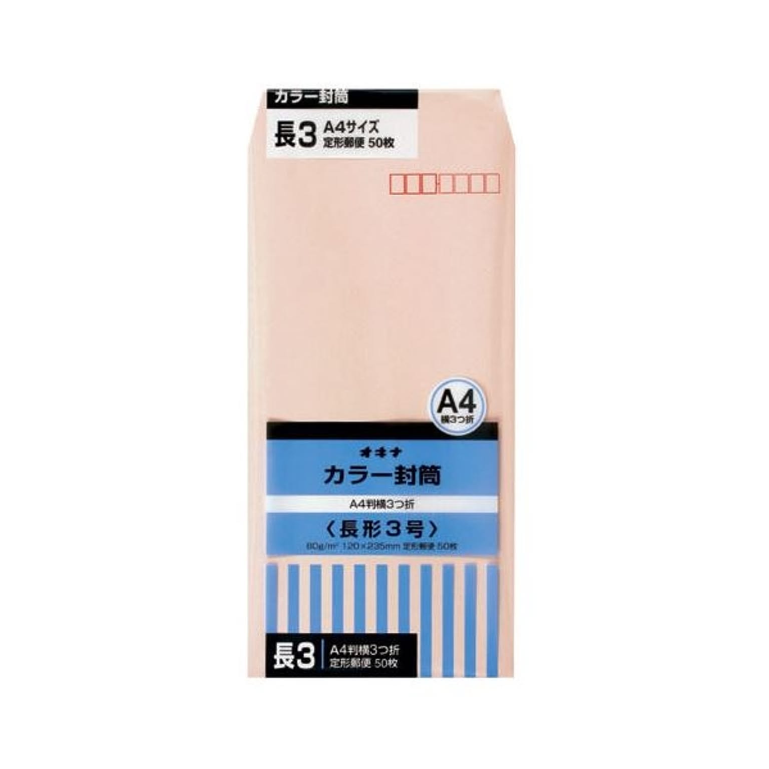 オキナ カラー封筒 HPN3PK 長3 ピンク 50枚*10