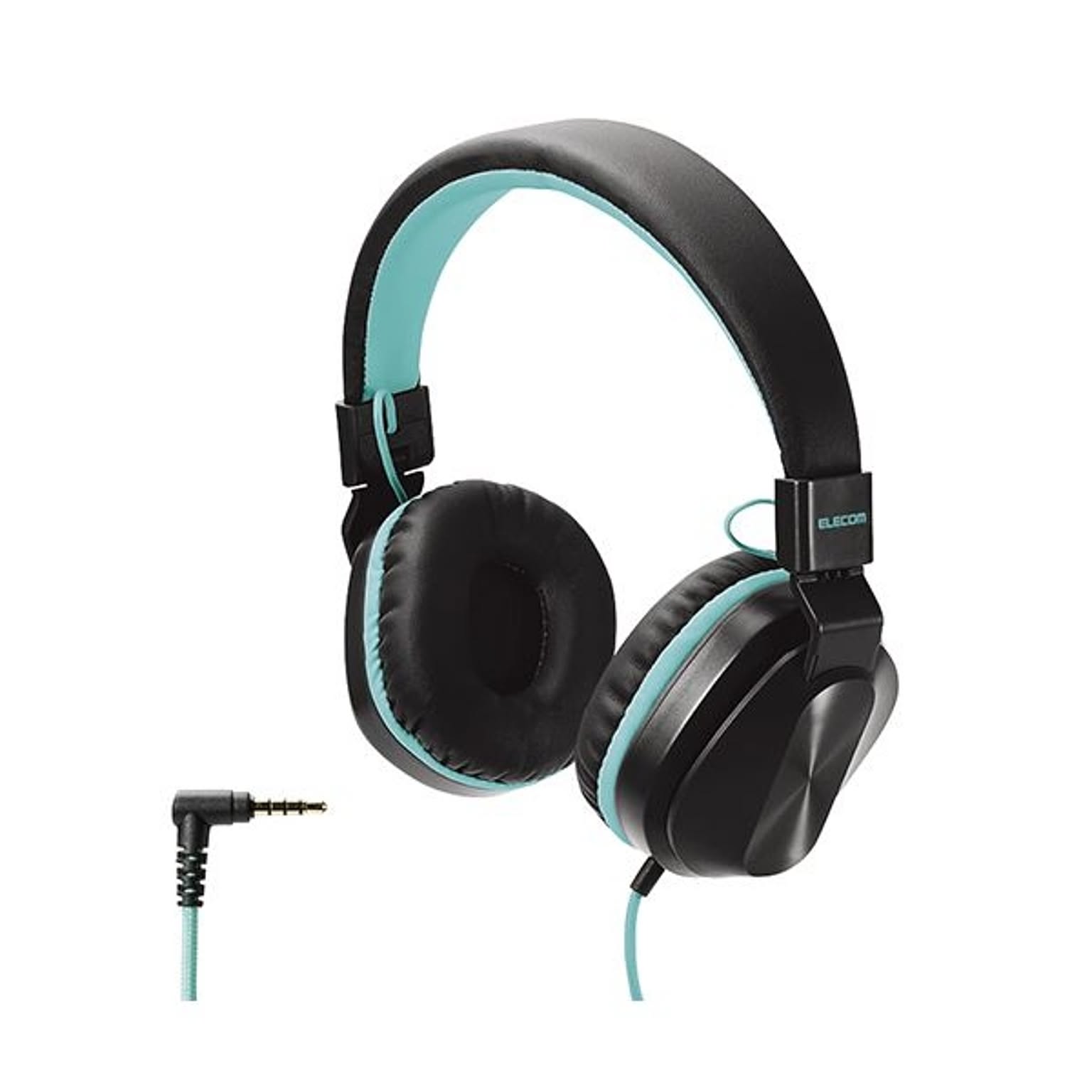 エレコム ヘッドホン 子供用 折りたたみ式 φ3.5mm 4極 通話可能 サイズ調整 ケーブル1.2m ブラック×コバルトグリーン オンライン学習 HS-KD02TBKG