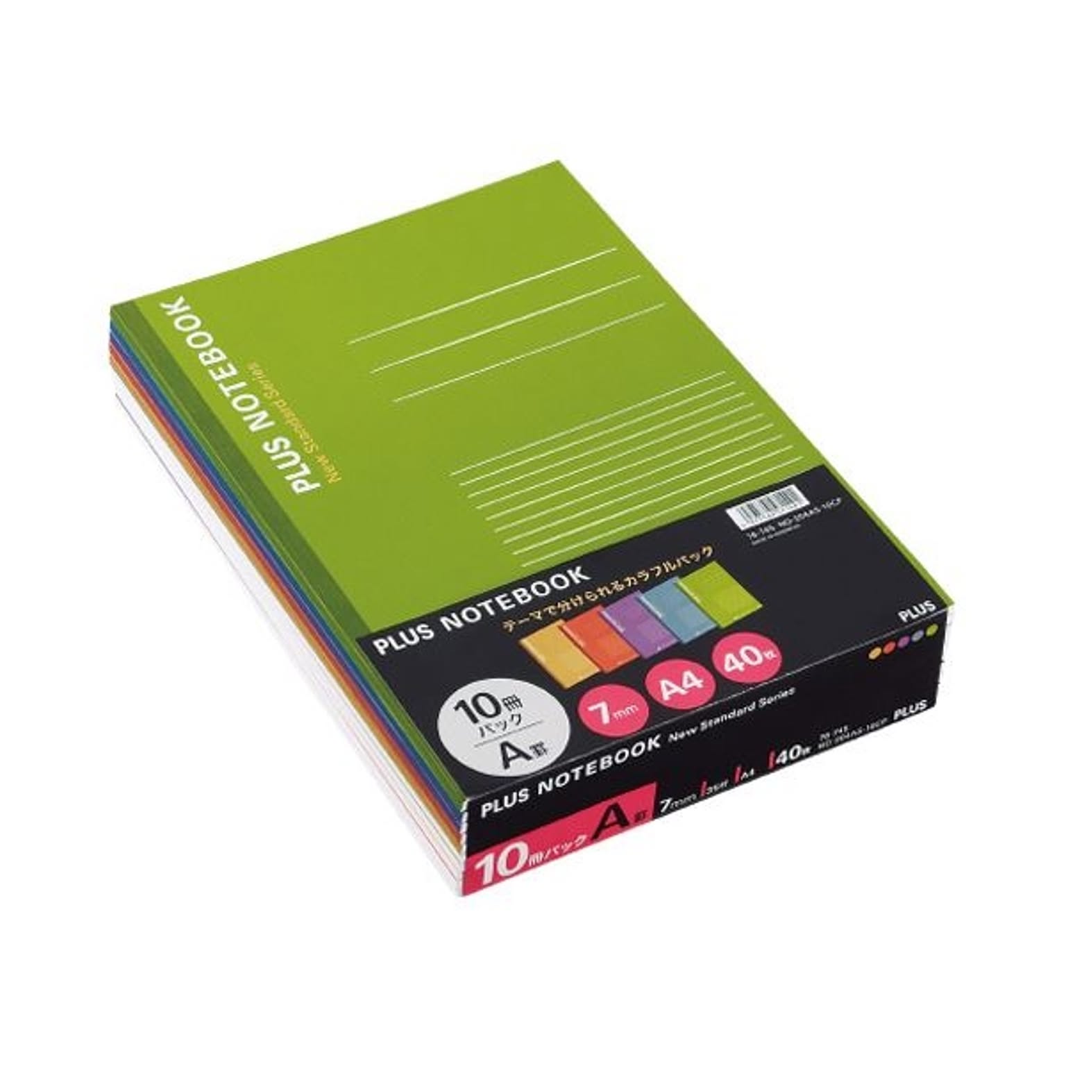 (まとめ) プラス ノートブック セミB5A罫7mm30枚 イエロー・オレンジ・パープル・ブルー・グリーン NO-003AS-10CP1パック(10冊:各色2冊) ×10セット