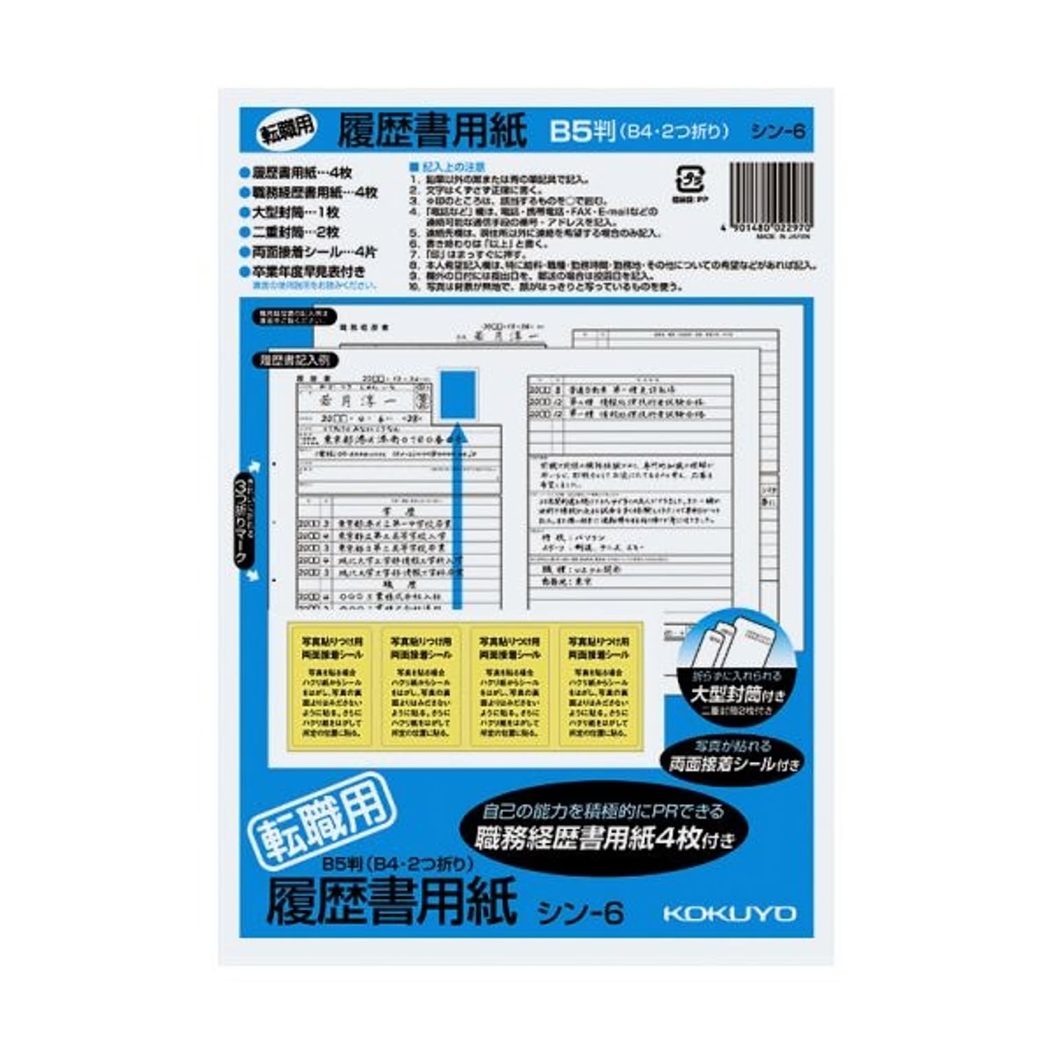 (まとめ)コクヨ 履歴書用紙(大型封筒 1枚・小型封筒2枚・接着シール付)B5 転職用 履歴書・職務経歴書各4枚 シン-6 1セット(10パック)【×5セット】