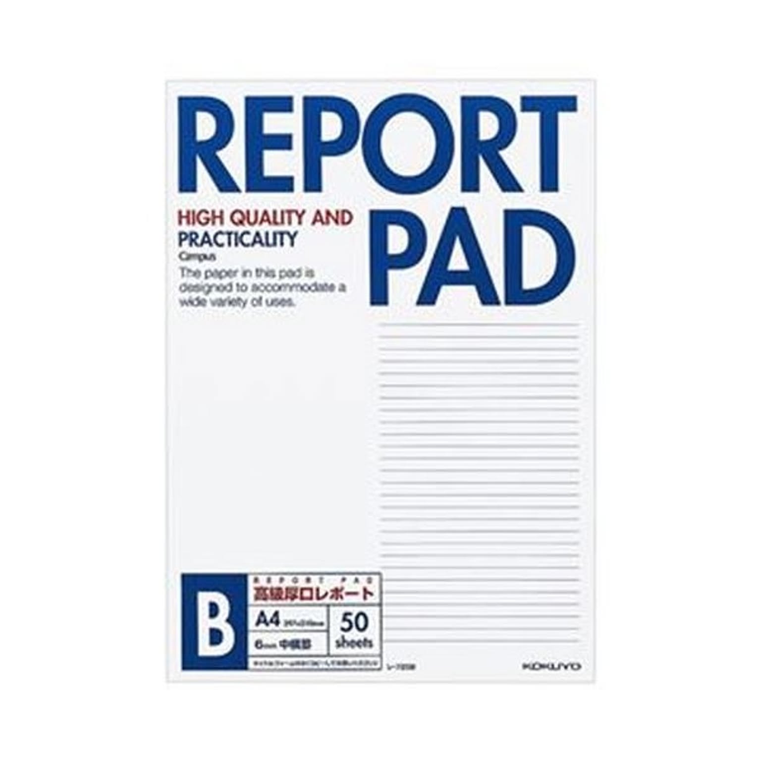 (まとめ)コクヨ キャンパスレポートパッド(表紙巻き)A4 B罫6mm 40行 50枚 レ-725B 1セット(5冊)【×10セット】
