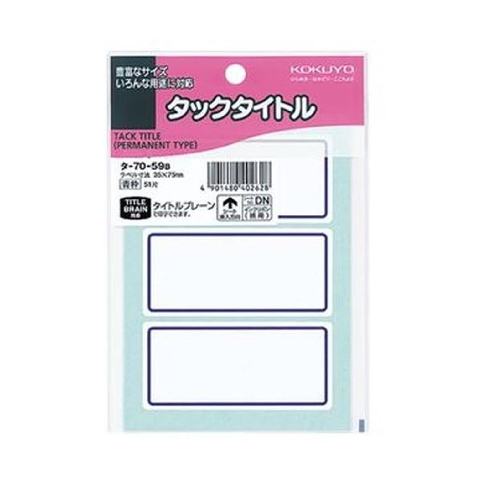 (まとめ)コクヨ タックタイトル 35×75mm青枠 タ-70-59B 1セット(510片:51片×10パック)【×5セット】