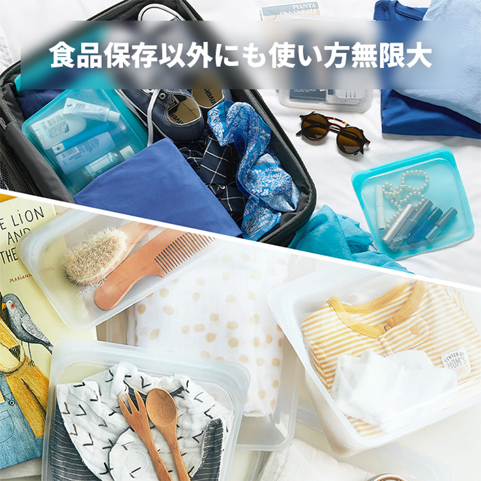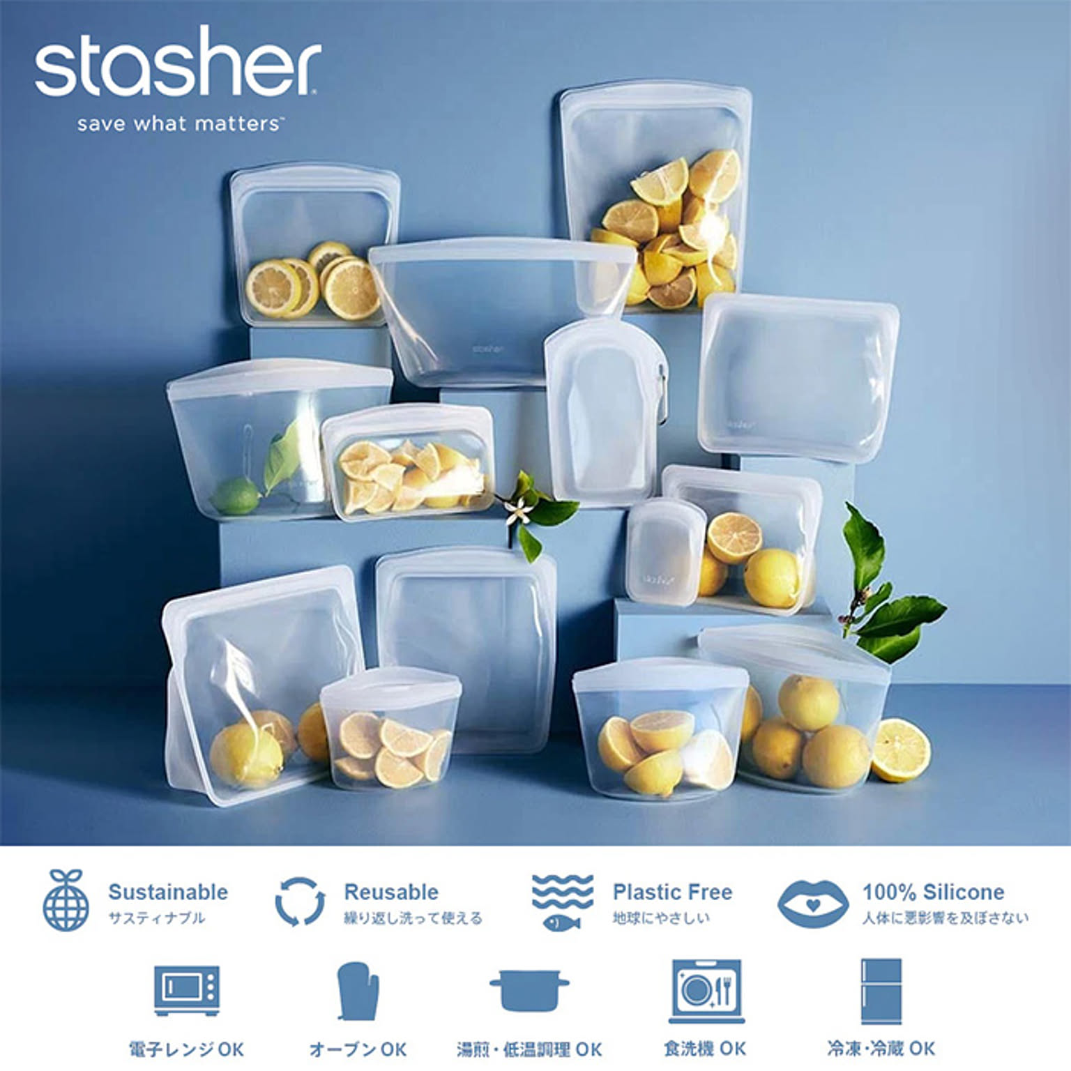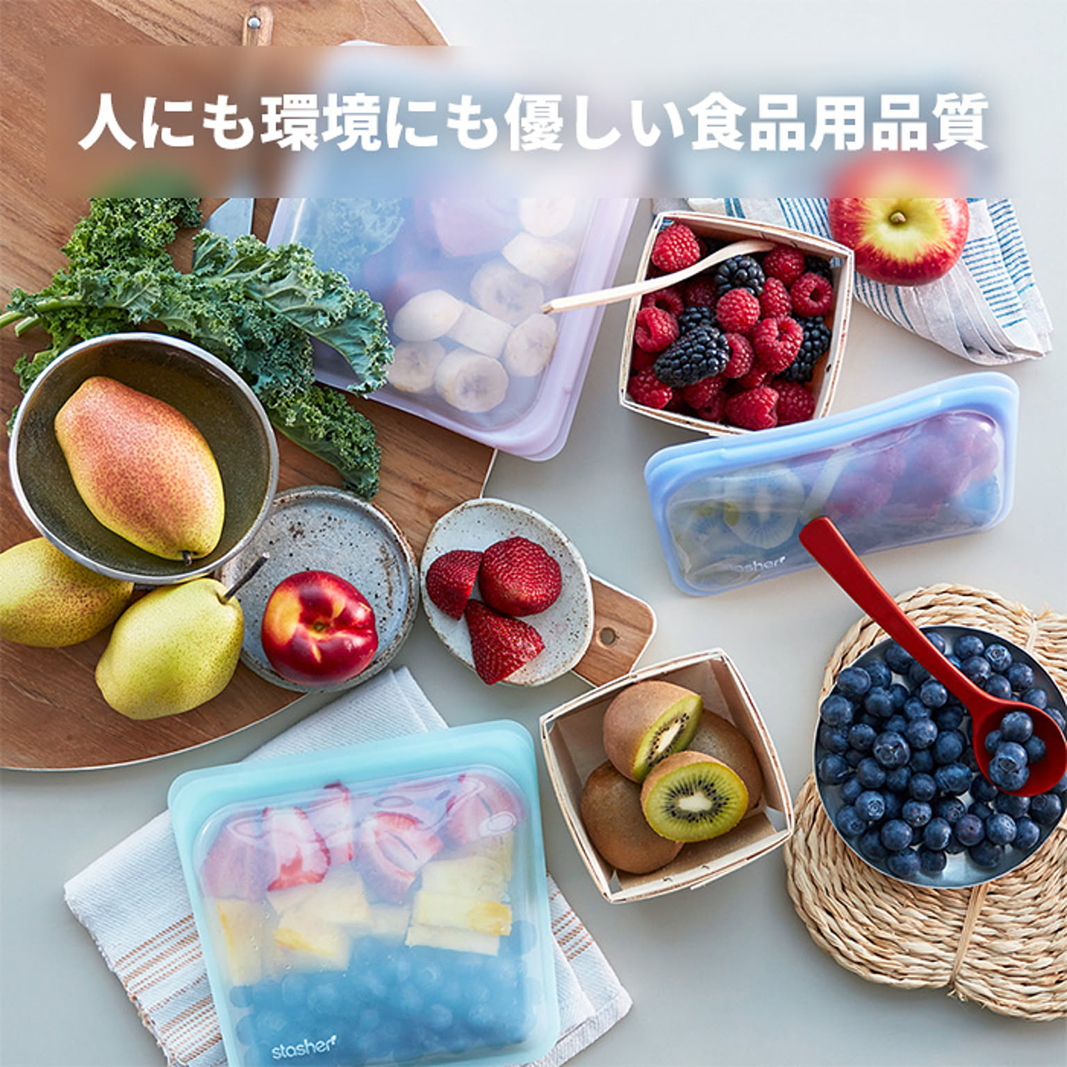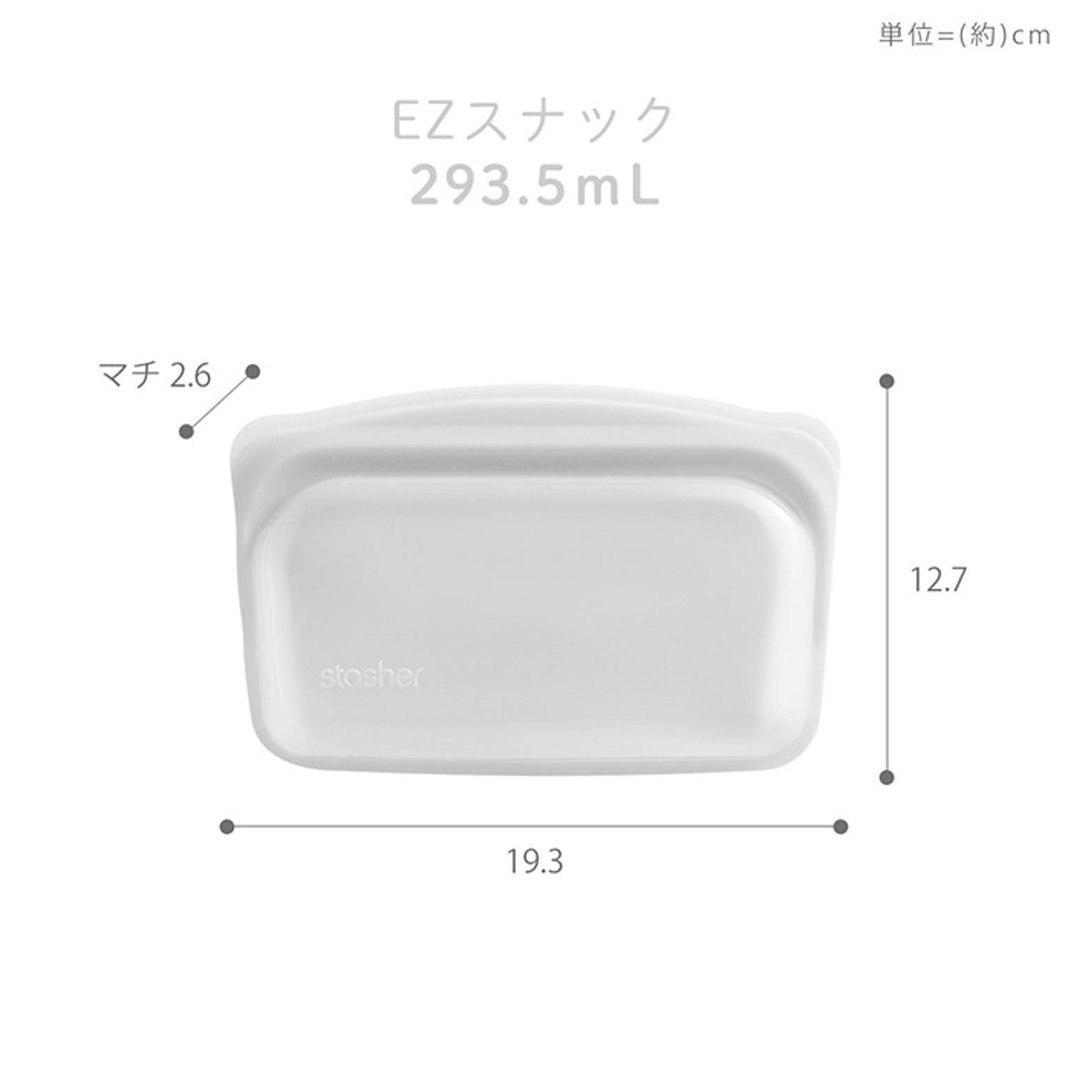 密閉する・100%プラチナシリコーン・保存容器「stasher / スタッシャー」。口部分のピンチロックシステムが進化したEZシリーズ。力が弱い方や指が小さい方でも簡単に開けることができます。お子さんのお菓子を入れたり、カットフルーツを入れたりし、スマホやキーケースにも最適なスナックサイズです。