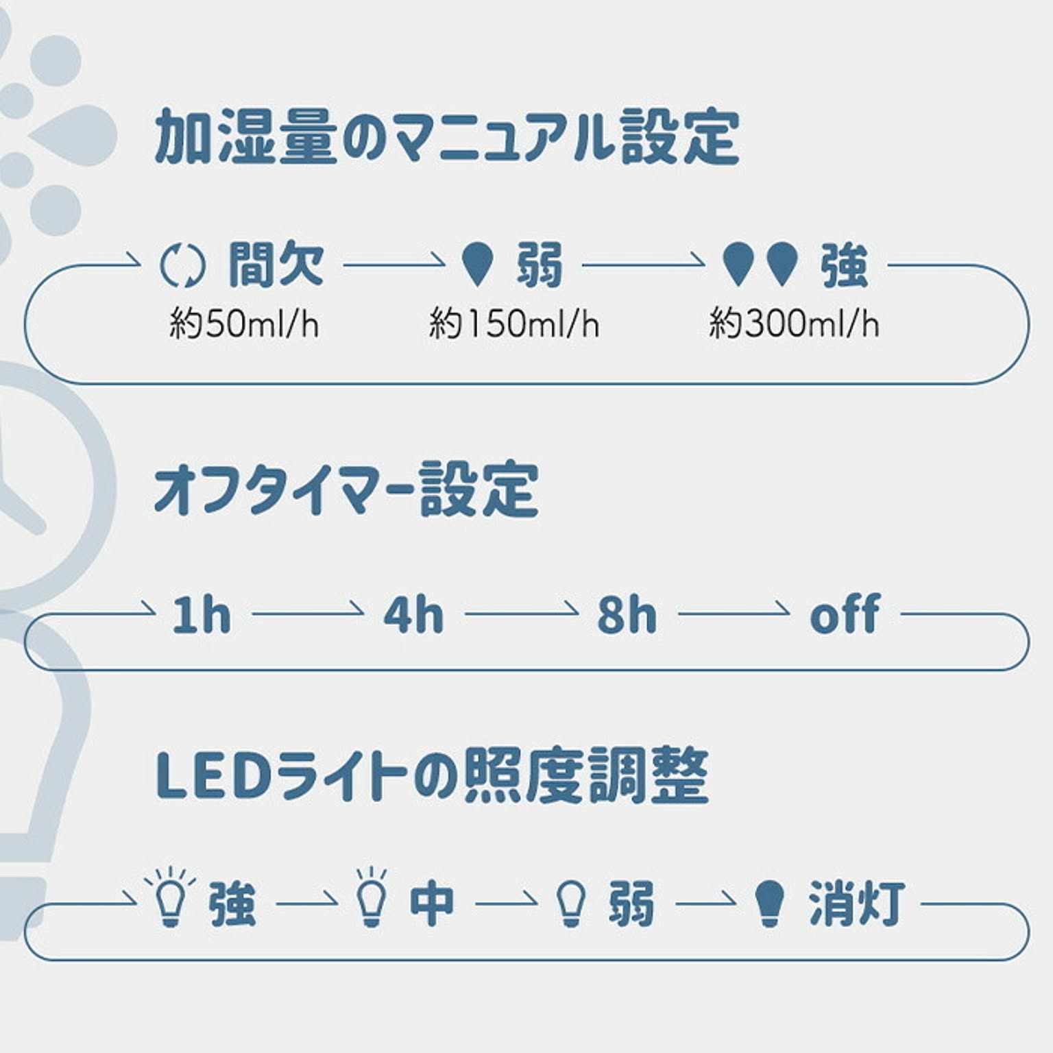 大容量/ディフューザー/フレグランス/お手入れ簡単/コンパクト/照度3段階/自動運転/子供部屋/オフィス/美デザイン