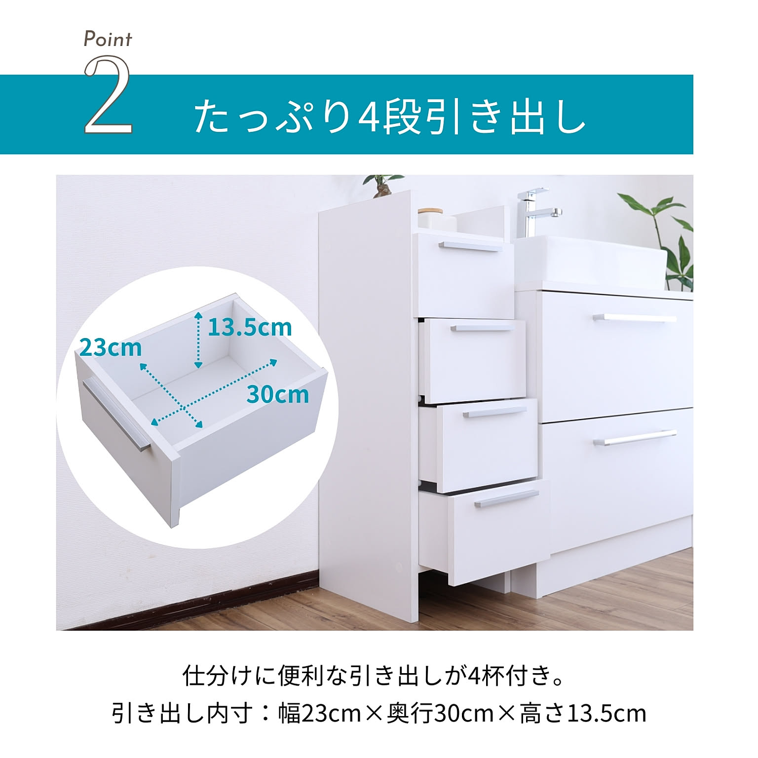 サニタリーチェスト 洗面所収納 引き出し4杯 ランドリー収納 幅30cm 幅45cm 幅60cm 組立家具 木製 日本製 NC-9030H NC-9045H NC-9060H