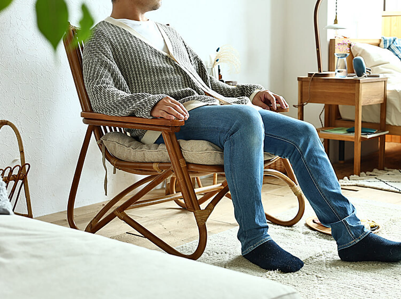 ラタン(籐)×チーク材を組み合わせたおしゃれで、自分だけの空間を確保できるパーソナルチェア、Voim(ボルム)。座面や背もたれのフレームに使用しているラタン(籐)は、日本に自生しておらず、インドネシア・マレーシアなどの東南アジアや、アフリカ・オーストラリアなどのジャングルに自生するヤシ科のツル性植物です。その繊維は植物中最長にして最強といわれ、数十年の耐久性があります。また木材に比べて非常に軽いため扱いやすい点も、ラタンの魅力のひとつです。天然素材ですので、使うほどに表面が深みのあるアメ色に変化して、独特の美しさを醸し出すのも特徴。肘置き部分に使われているチーク材は、木目が緻密で美しく、乾燥による狂いが少なく、耐久性に優れた家具に最適な稀少な銘木。1人掛けのチェアに腰掛けて、お気に入りの本を読んだり、音楽を聴きながらコーヒーを飲んだりと、自分だけの時間を楽しむことができて、1人だけのとっておきの空間をおうちの中に作り出してくれますよ♪