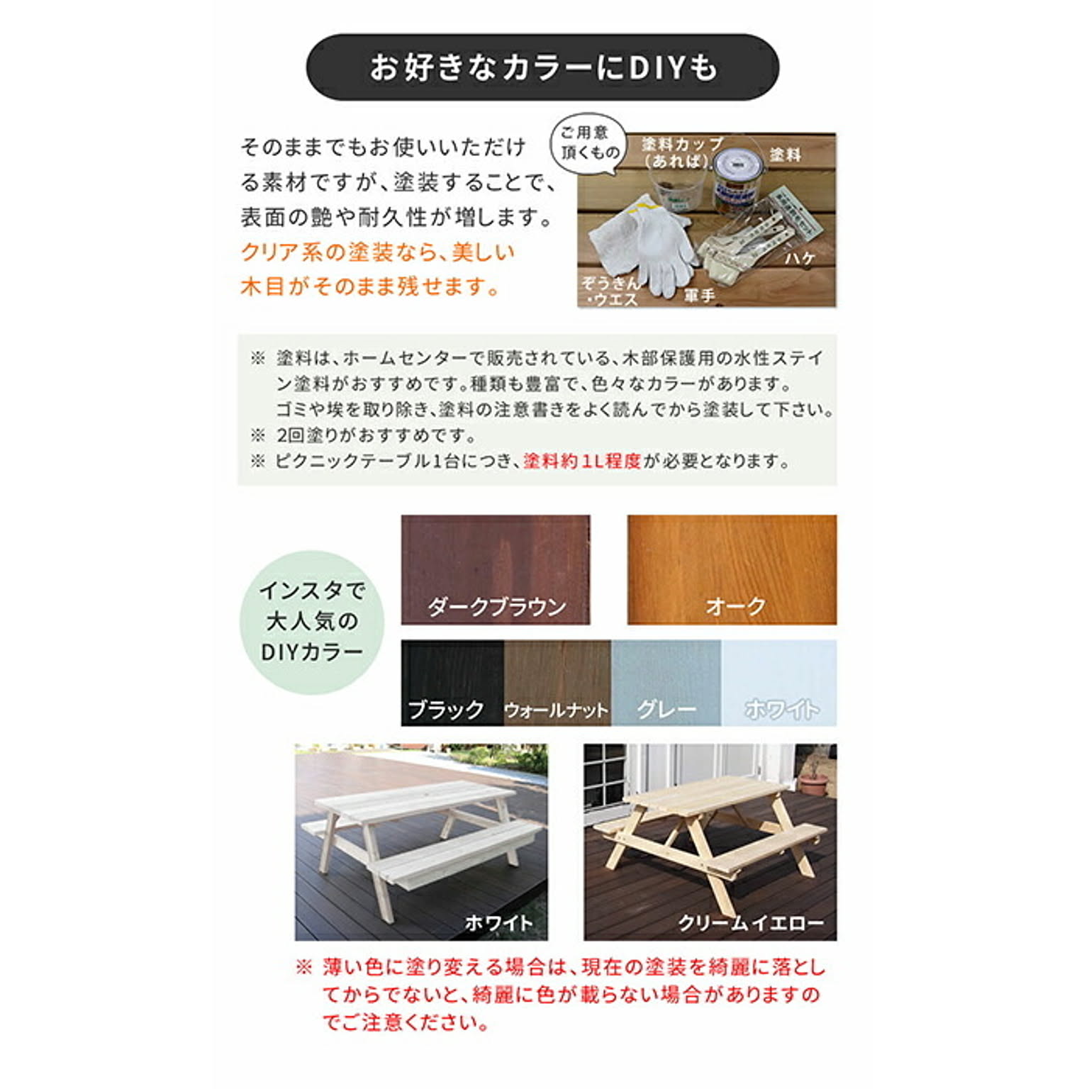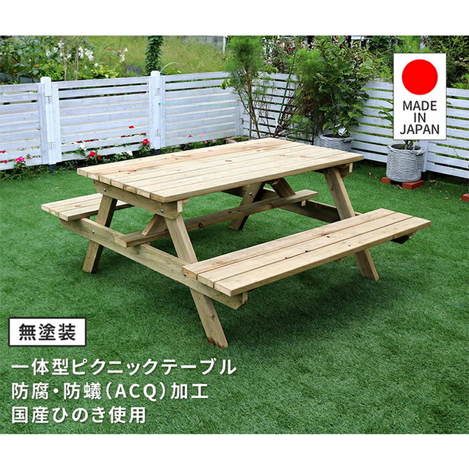 日本製ひのきピクニックテーブル(防腐加工)無塗装