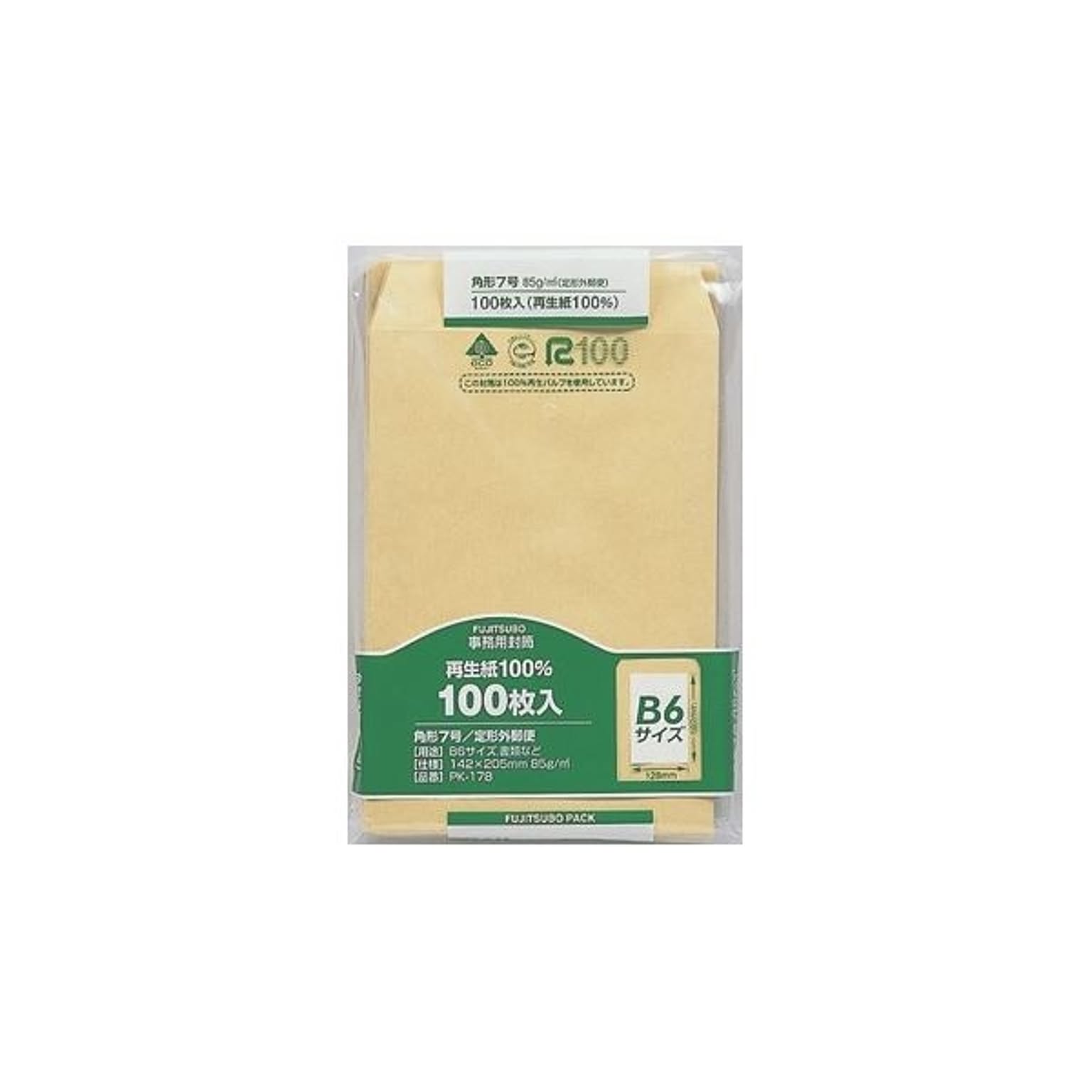 (まとめ) 再生紙クラフト封筒 100枚パック入 PK-178 100枚入 【×3セット】