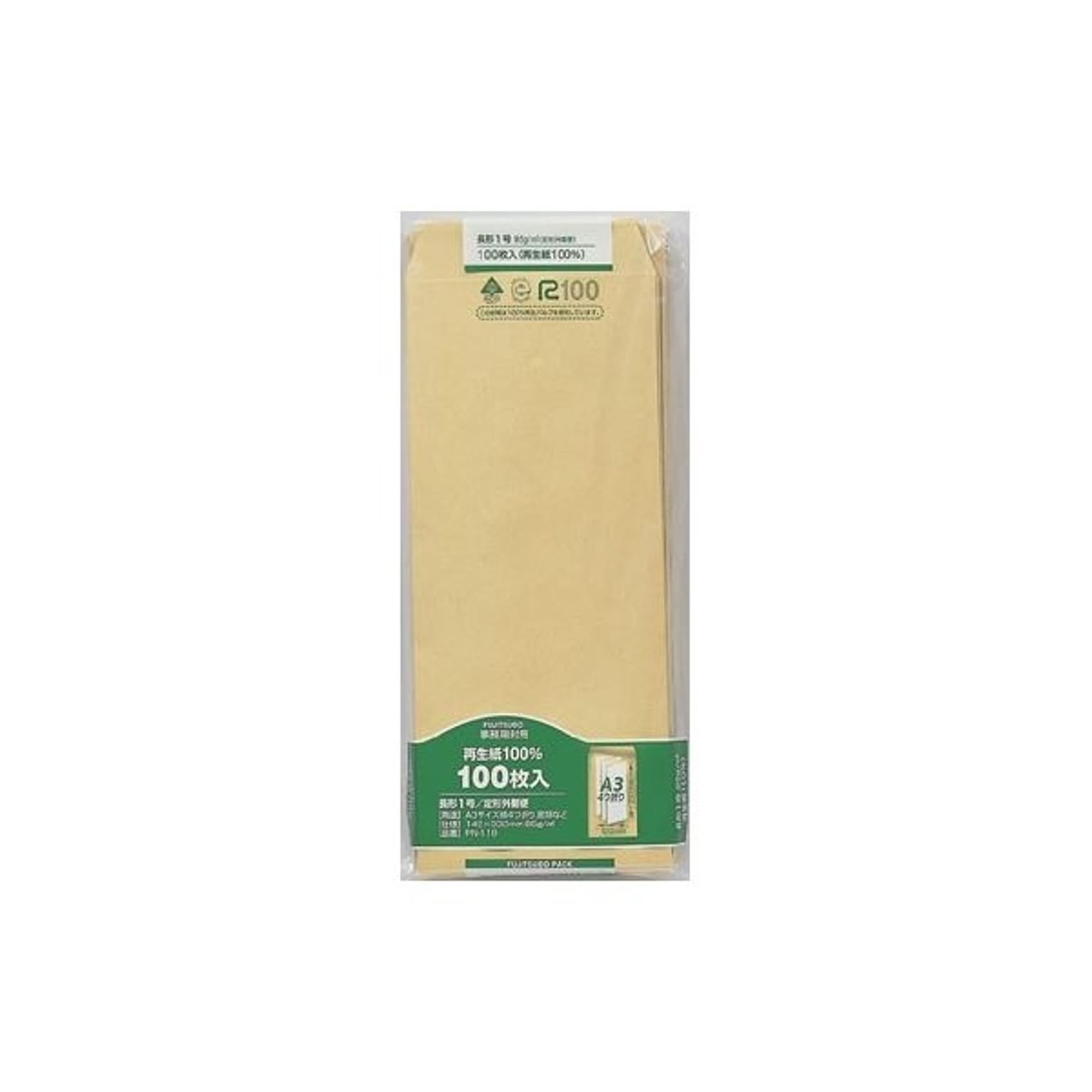 (まとめ) 再生紙クラフト封筒 100枚パック入 PN-118 100枚入 【×3セット】