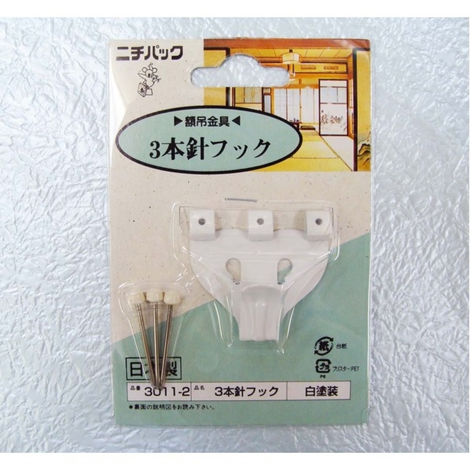 壁掛け用金具(額吊り金具)5kg ■3本針フック3011-2(合板・木壁・石こうボード用) ホワイト【5個セット】