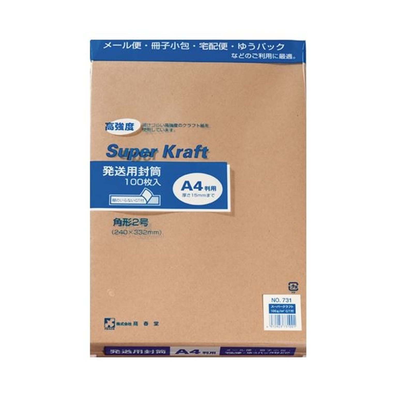 (まとめ) ピース 発送用封筒スーパークラフト テープ付 角2 100g/m2 731-00 1パック(100枚) 【×4セット】