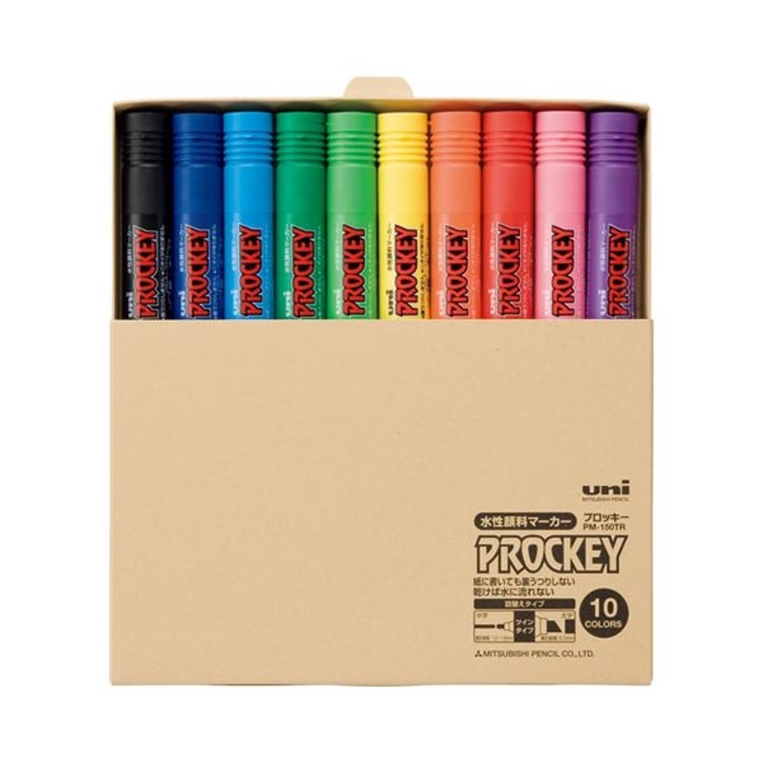 (まとめ) 三菱鉛筆 水性マーカー プロッキー 詰め替えタイプ 太字角芯+細字丸芯 簡易紙箱入 10色(各色1本) PM150TRT10C 1パック 【×4セット】