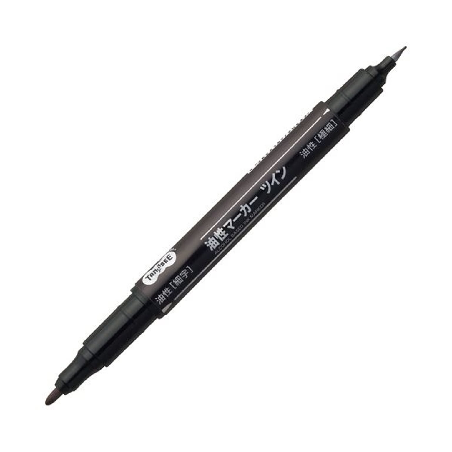 (まとめ) TANOSEE キャップ式油性マーカー ツイン 細字+極細 黒 1セット(50本) 【×4セット】