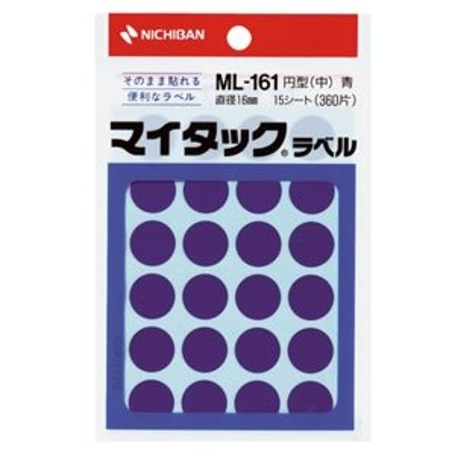 (まとめ) ニチバン マイタック カラーラベル 円型 直径16mm 青 ML-1614 1パック(360片:24片×15シート) 【×30セット】