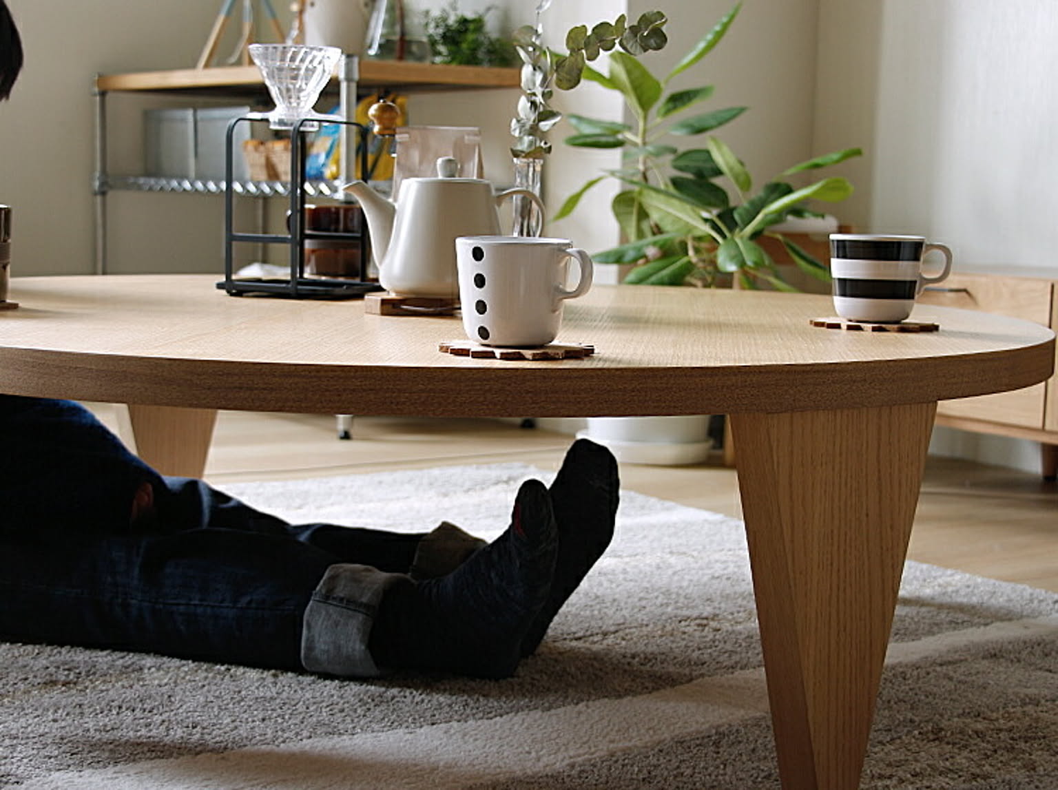 天然木オーク材を使用した、一家団らんの象徴であった"ちゃぶ台"を連想させる、幅120cmの折りたたみ式円形リビングテーブル「Reglo(レグロ)」。古くからヨーロッパやアメリカでは、家具や床板、船舶、ウイスキー樽などにも使われいるオーク材に汚れや耐水性に優れたラッカー塗装を使用。角がない円形タイプは、やわらかい雰囲気のお部屋に仕上がるだけでなく、空間に圧迫感を与えないので、お部屋を広く感じさせてくれるのも特徴。また、シンプルでモダンなデザインは洋室にも和室にも取り入れやすいところも魅力ですよ。カラーは、ナチュラルとブラウンの2色からお選び頂けます。