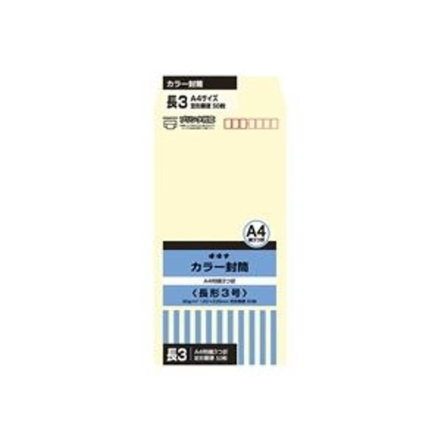 (まとめ)オキナ カラー封筒 HPN3CM 長3 クリーム 50枚【×10セット】