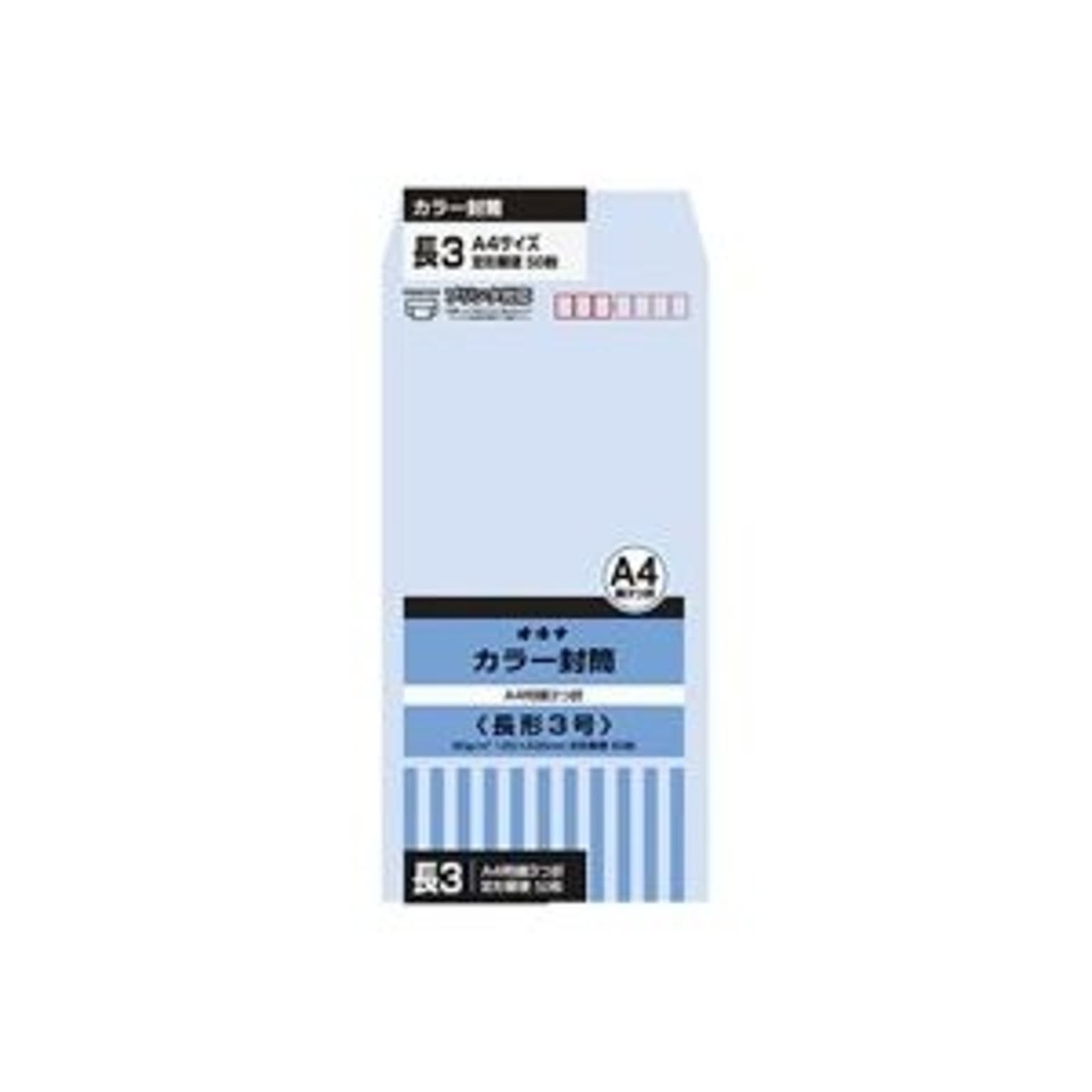 (まとめ)オキナ カラー封筒 HPN3AQ 長3 アクア 50枚【×10セット】