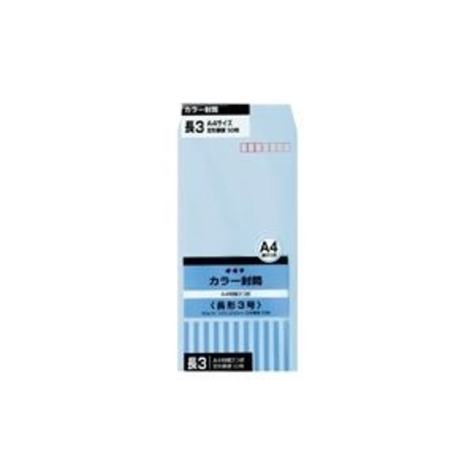 (まとめ)オキナ カラー封筒 HPN3BU 長3 ブルー 50枚【×10セット】