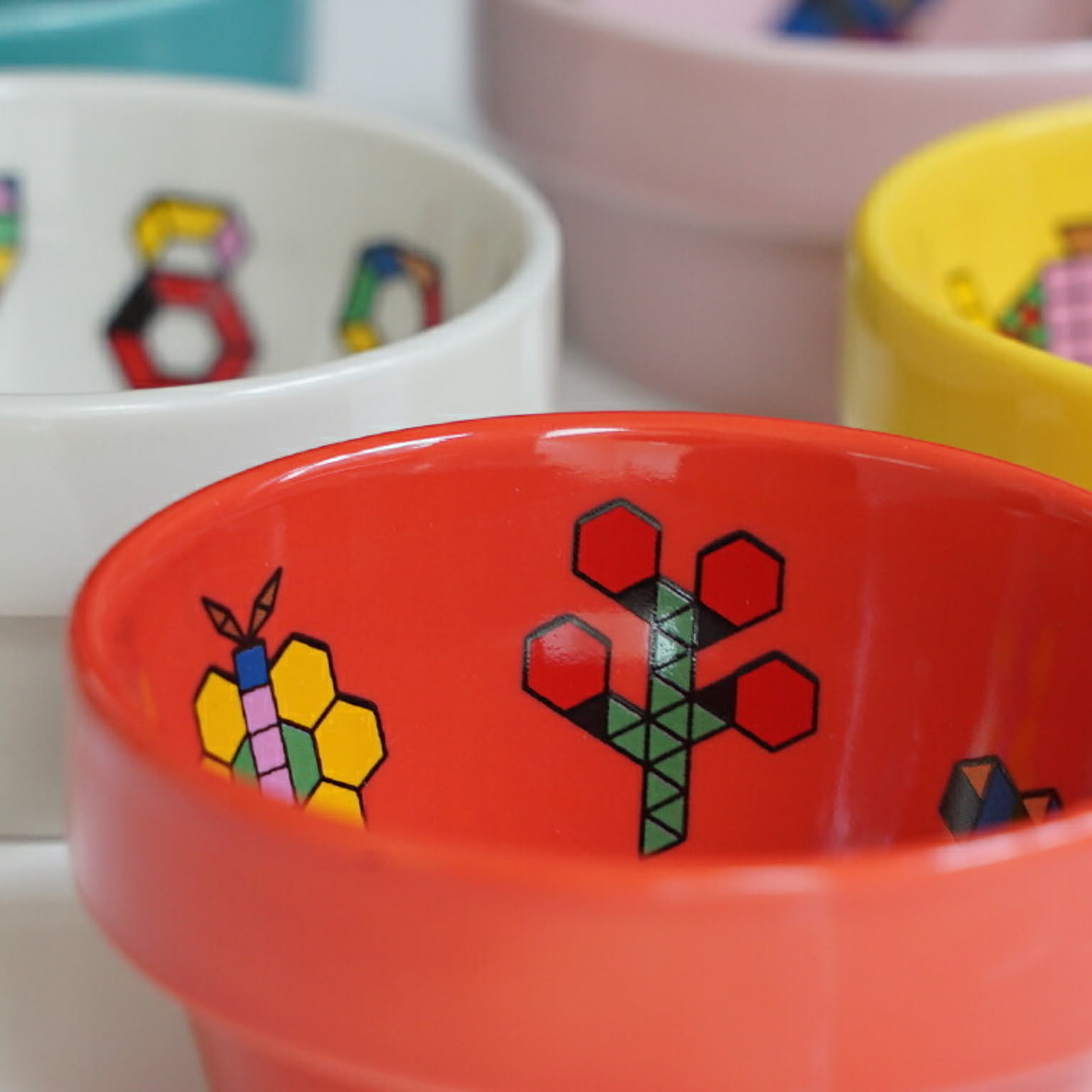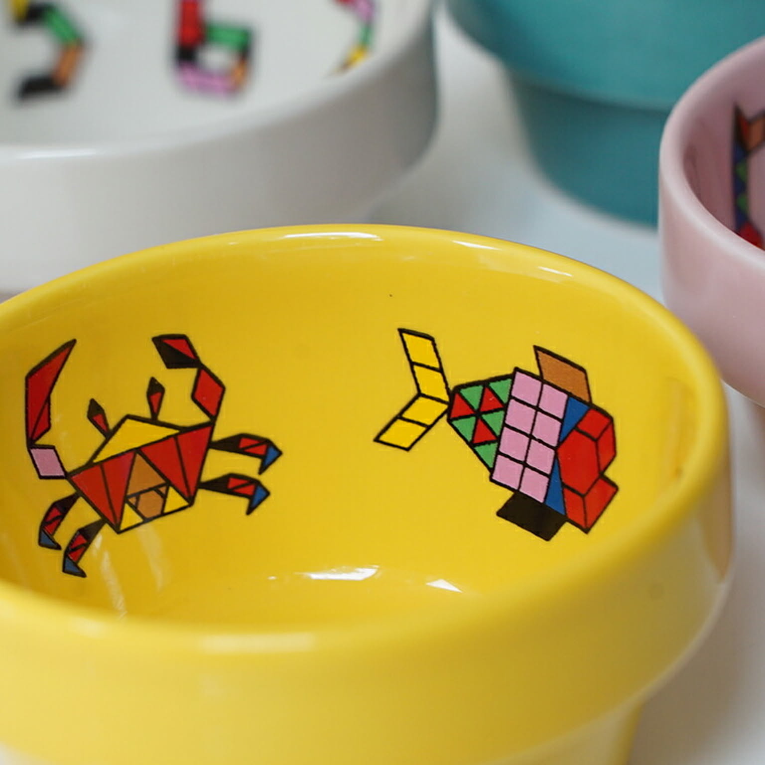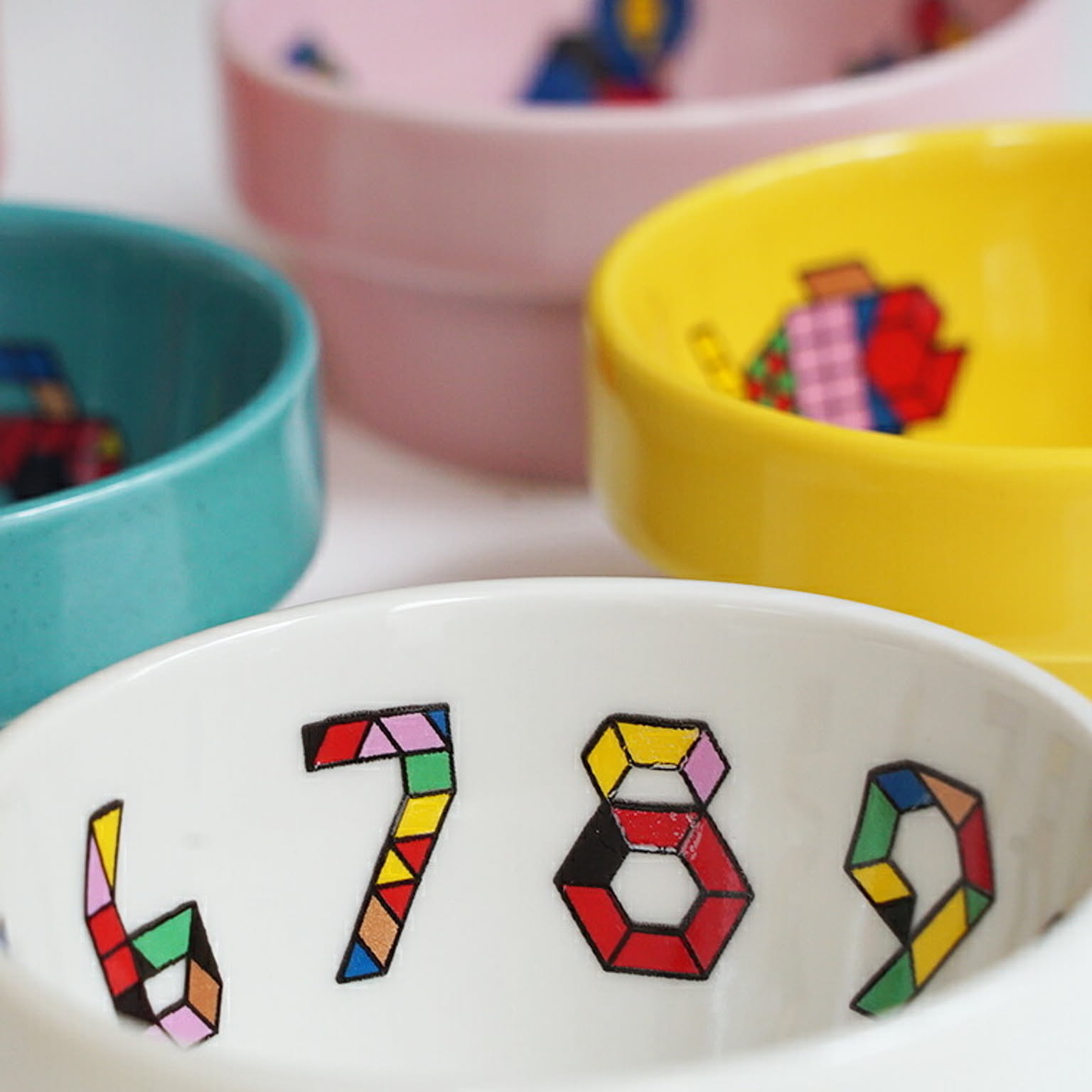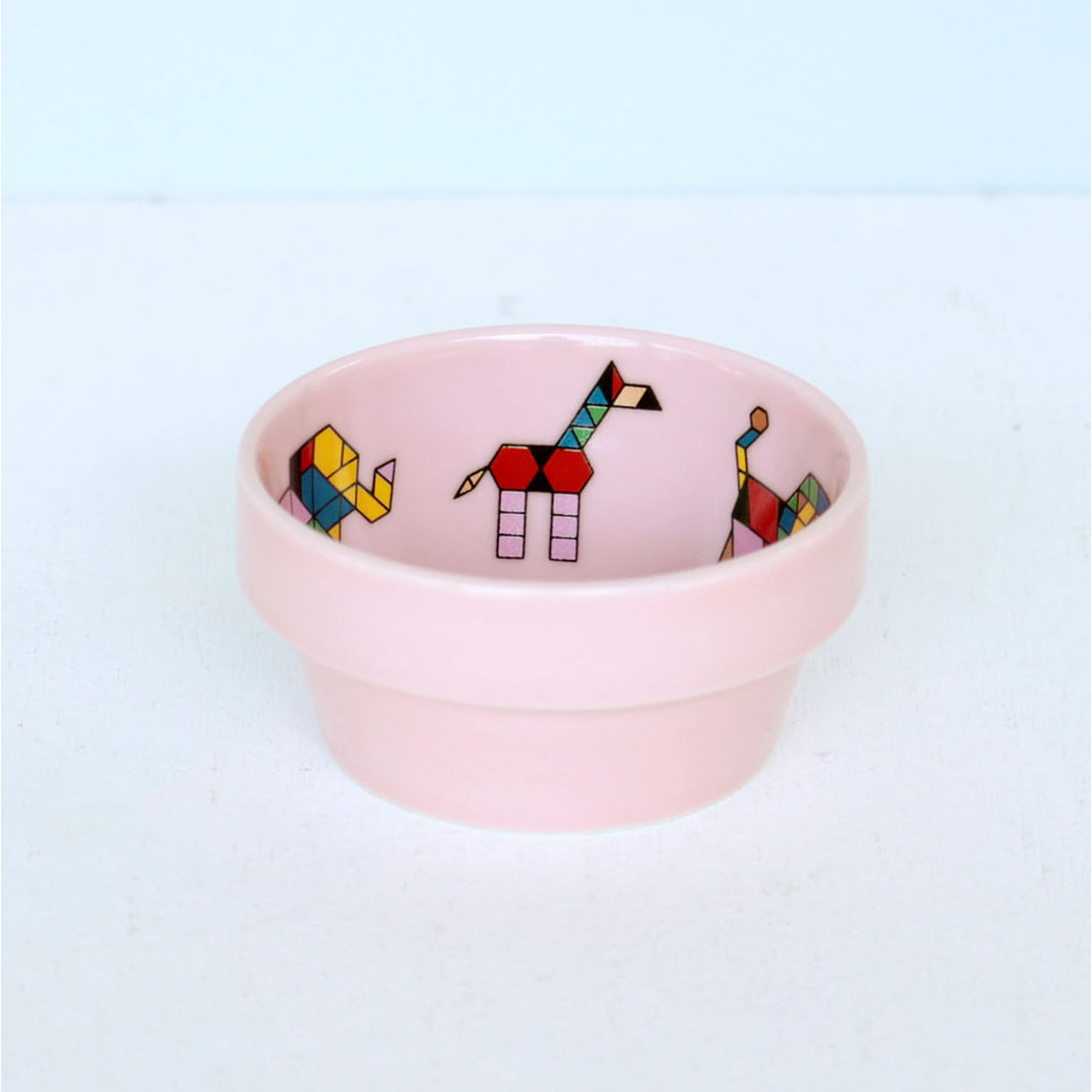 シンプルな図形のパズルで作った動物や乗り物をデザインした子供食器です。