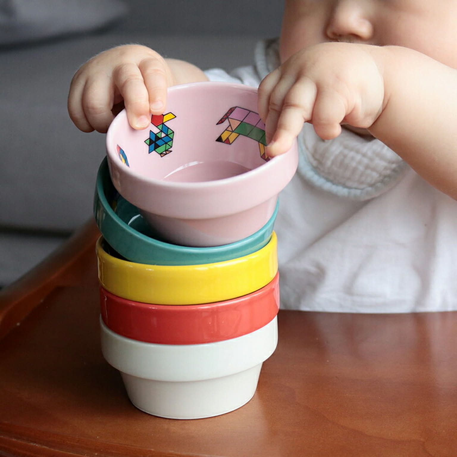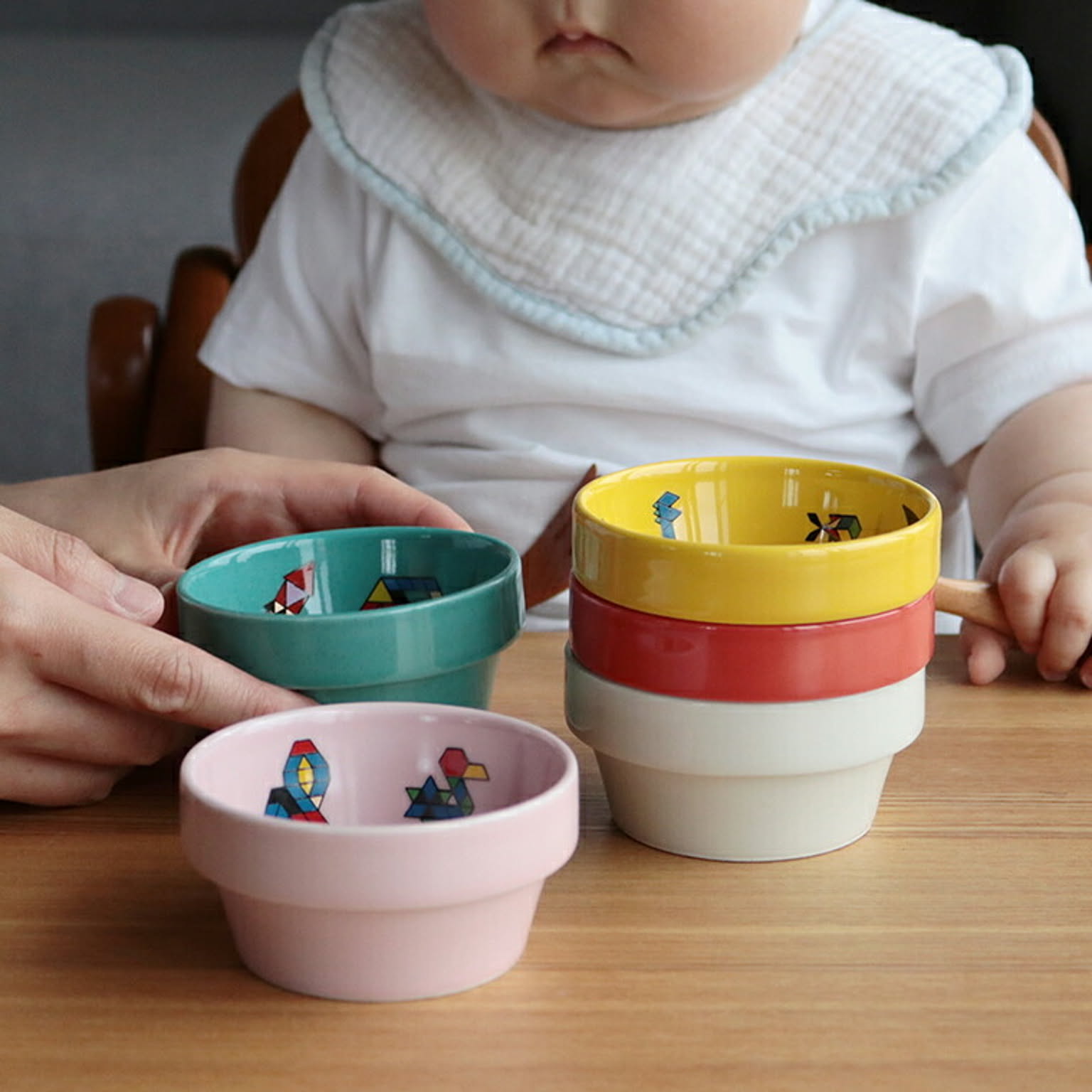 スタッキングできる手のひらサイズの小さなボウルで、離乳食デビューの赤ちゃんの食器としても大活躍してくれます。
