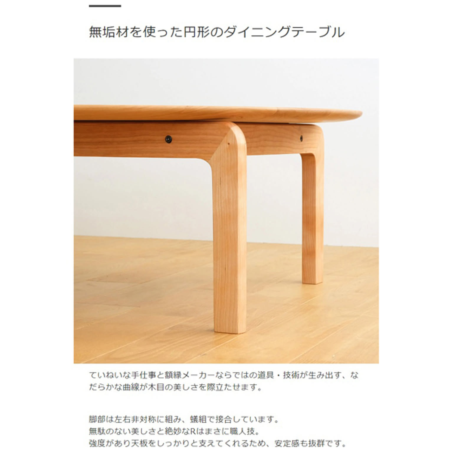 無垢材を使った円形のローテーブル